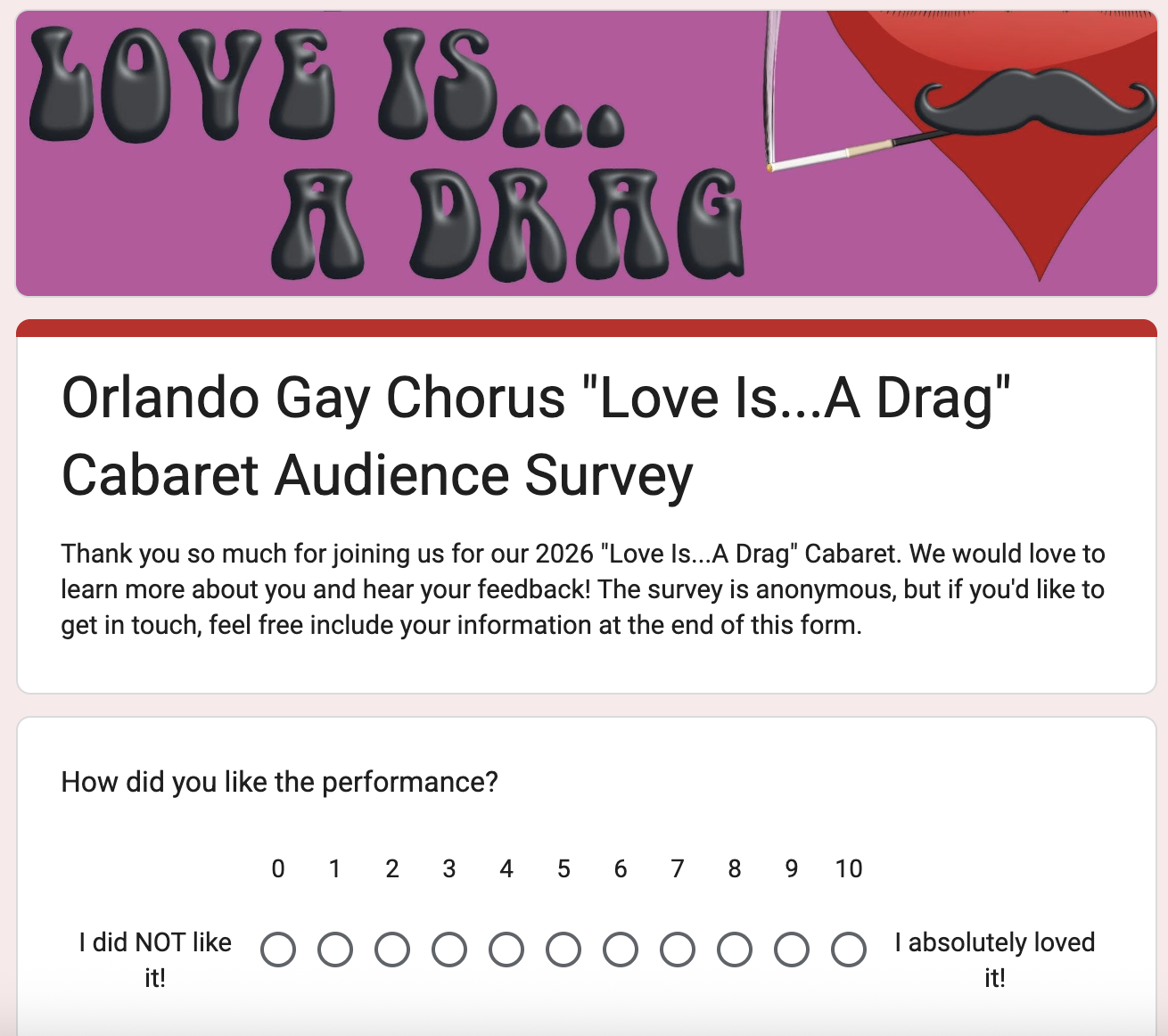 Did you catch the performance of Love Is… a Drag cabaret on Saturday, 2/21 in person or online? We’d love to hear your feedback! Please complete the audience survey and let us know what you thought.